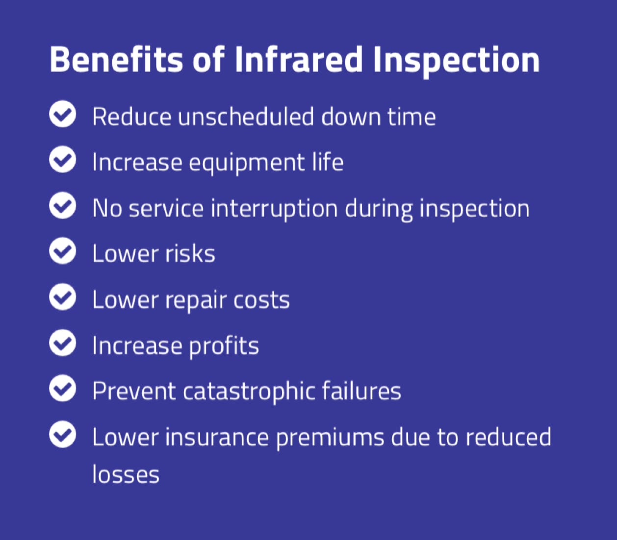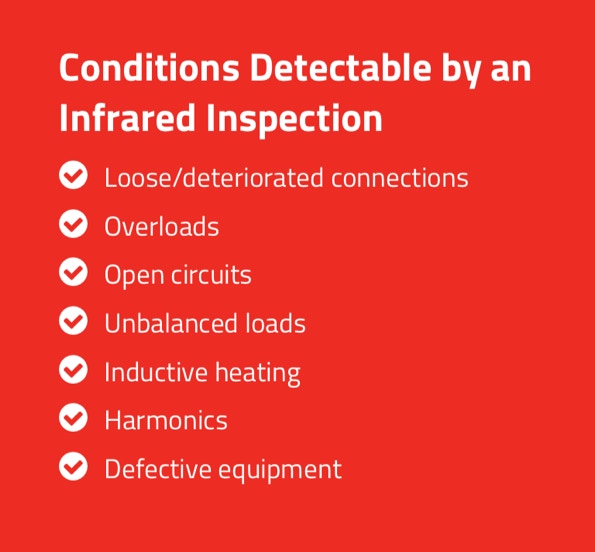 Increased resistance and heat are the primary reasons most electrical components fail. Infrared cameras detect this heat. Because most things electrical tend to get hot before they fail, Infrared inspection is the preferred diagnostic technology used to detect early failures in electrical systems and switchgear.
