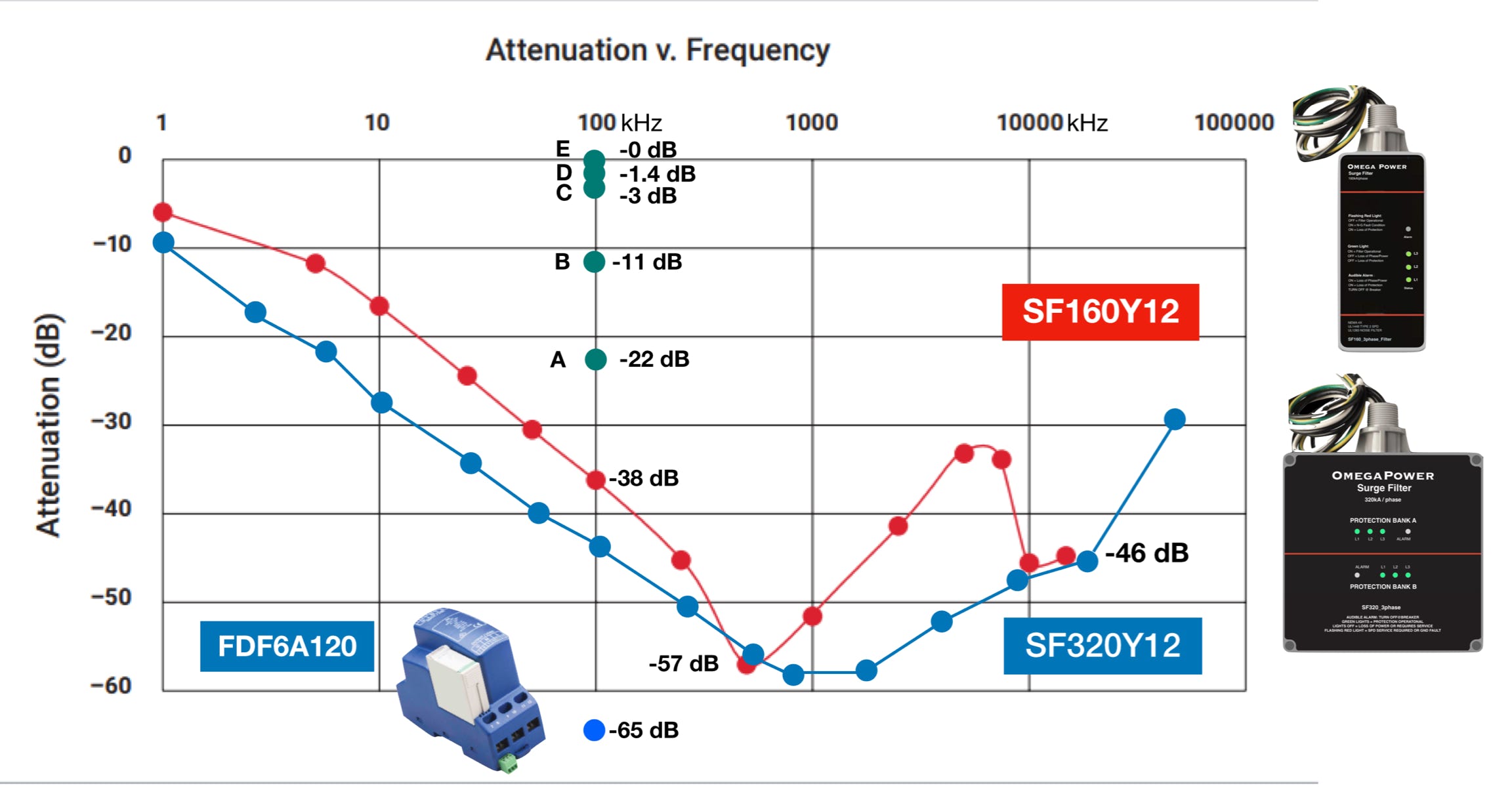 Surge Filter’s Noise Reduction: DIN -65dB @ 100kHz Panels : up to -57dB