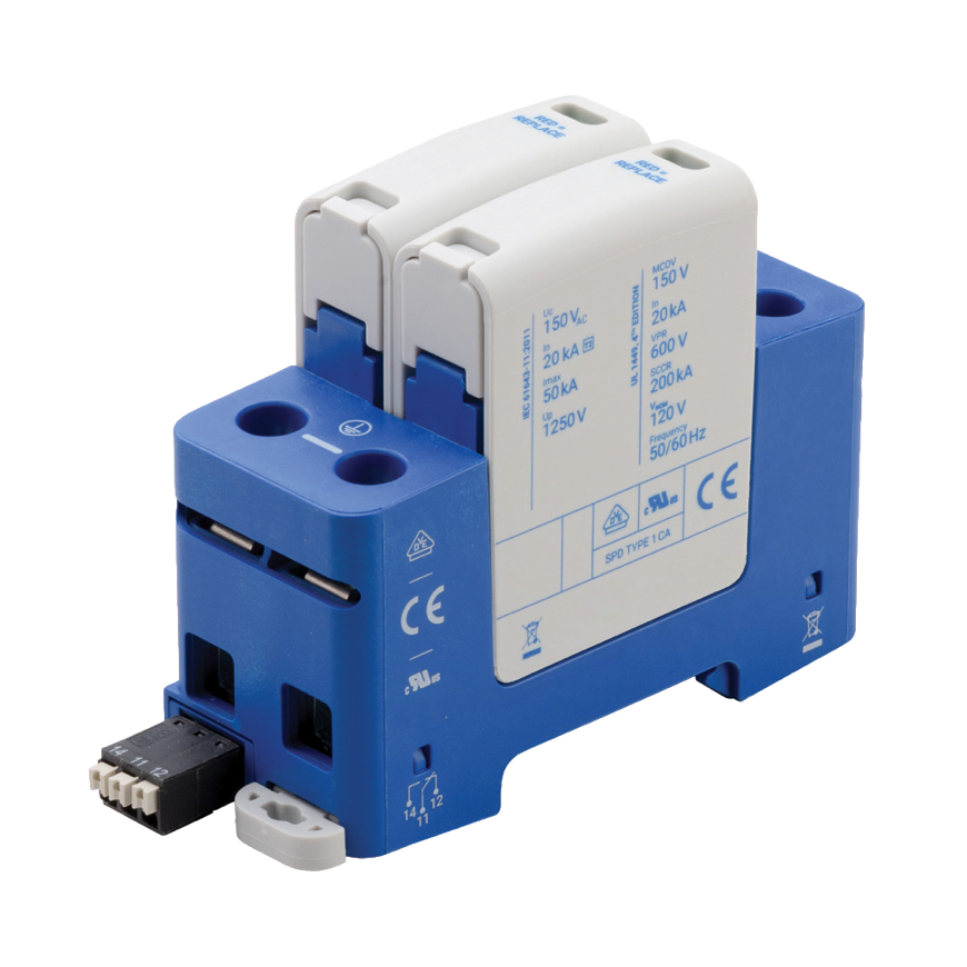The DTA is UL1449 Edition 4 Type 1CA Listed. Complies with: EN 61643-11 Type 1 and 2 IEC® 61643-11 Class I, Class II. Lowest possible VPR combined with a robust high peak surge current rating. All versions of the DT series feature hot swappable modules.