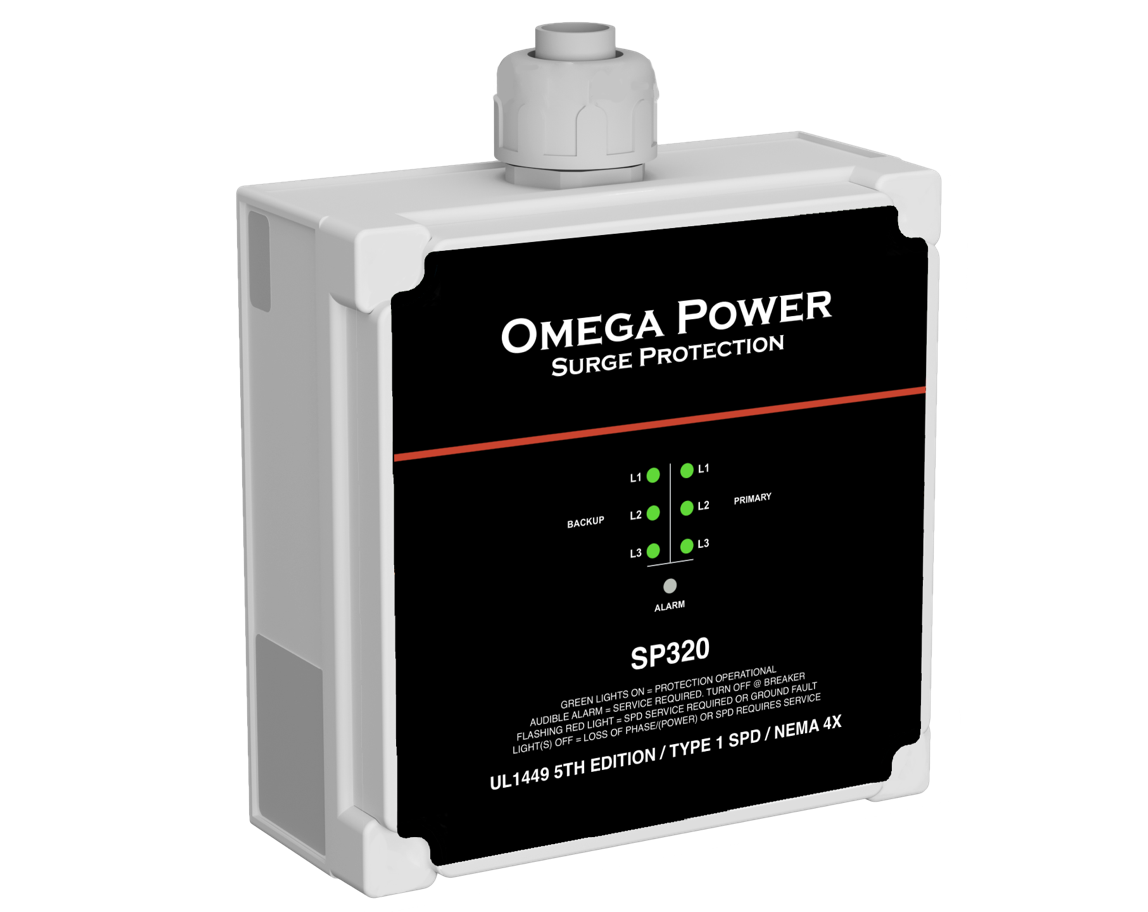 The SP Compact Surge Protector (SPD) by Omega Power provides economical protection against damaging transients and surge events. The SP is listed for UL 1449 Edition 5 which allows for installations on the line or load side (Type 1 or Type 2). Applications include small service entrances, commercial and industrial branch panels in coordinated protection systems, rooftop and AC equipment disconnects, OEM control cabinet power applications and much more.